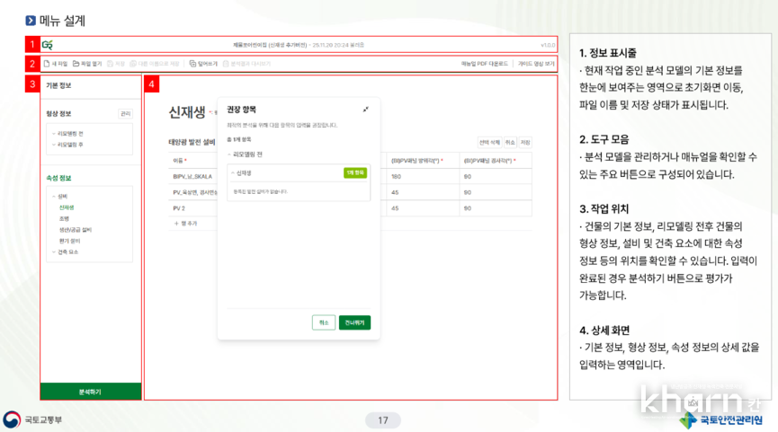 사용성 측면에서도 다양한 기능이 도입됐다. △층·실·면을 한 번에 생성하는 형상관리 기능 △반복적인 층·동구조 복사를 위한 ‘덮어쓰기 기능’ △다수 벽체에 구조체·창호를 일괄 배치하는 ‘배치 기능’ △엑셀로 작업한 재료·설비 정보를 그대로 가져오는 복사·붙여넣기 기능 등이다. 이로써 대형 병원·학교·사무용 건물처럼 다수의 실을 가진 건물도 빠른 시간 내 모델링할 수 있다. 추가로 입력 누락 여부를 자동 검수하는 기능도 탑재돼 해석오류를 사전방지한다.