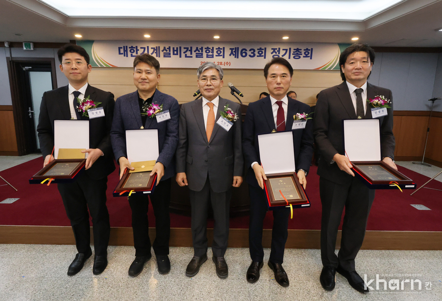 정기총회에 앞서 기계설비산업 발전에 기여한 △강창훈 국방시설본부 주무관 △안방율 한국건설기술연구원 연구위원 △오양균 한국종합건설기계설비협회 회장 △유재석 조달청 공사원가기준과 과장 △이문수 한국토지주택공사 공공주택설비처 처장(전) 등 5명에게 감사패가 수여됐다.