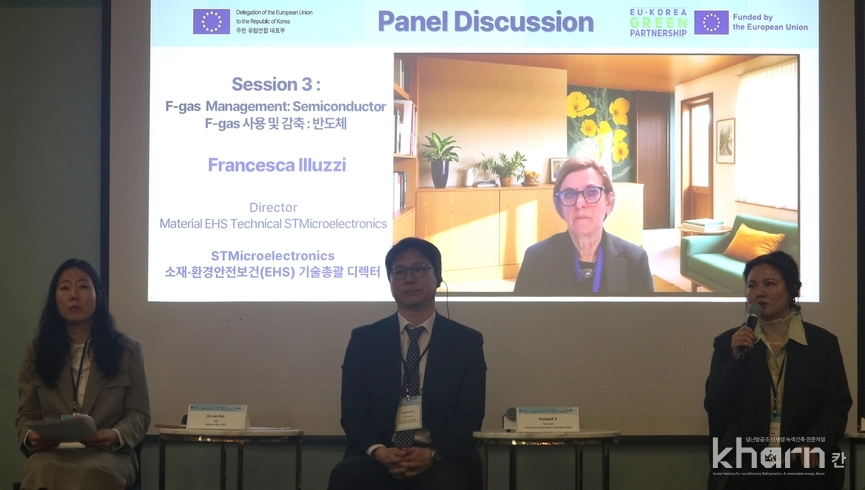 세션3: 반도체공정 내 F-gas사용 및 감축사례는 △유럽 반도체 공정 내 F-Gas 사용 및 감축 사례(Francesca Illuzzi ST마이크로일렉트로닉스 소재·환경안전보건(ESH) 기술총괄 디렉터) △한국 반도체공정 내 F-Gas 사용 및 감축사례(임현정 삼성전자 DS부문 환경팀 탄소전략그룹장) △반도체 산업계 대응방안 및 EU-한 양자 협력논의(좌장: 노진선 기후솔루션 Methane&HFCs 팀장) 등을 주제로 진행됐다.