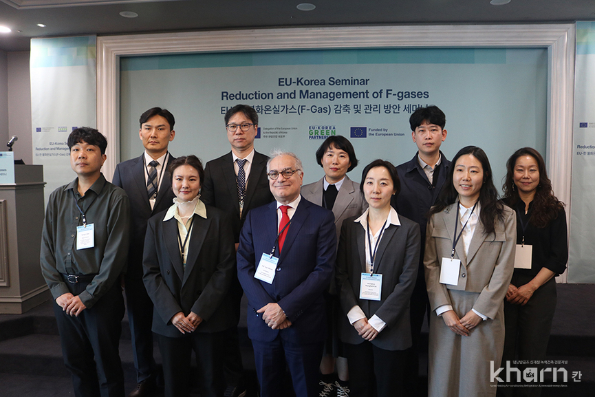 주한 유럽연합(EU) 대표부 주관으로 ‘EU-한 F-gas 감축 및 관리방안 세미나’가 지난 3월25일 서울 켄싱턴호텔에서 개최됐다. EU-한 그린파트너십 프로그램의 일환으로 마련된 이번 세미나에는 냉난방공조(HVACR)·반도체업계 관계자와 정책전문가 등 100여명이 참석해 불화온실가스 감축을 위한 정책방향과 기술적 대응방안을 심도 있게 논의했다.