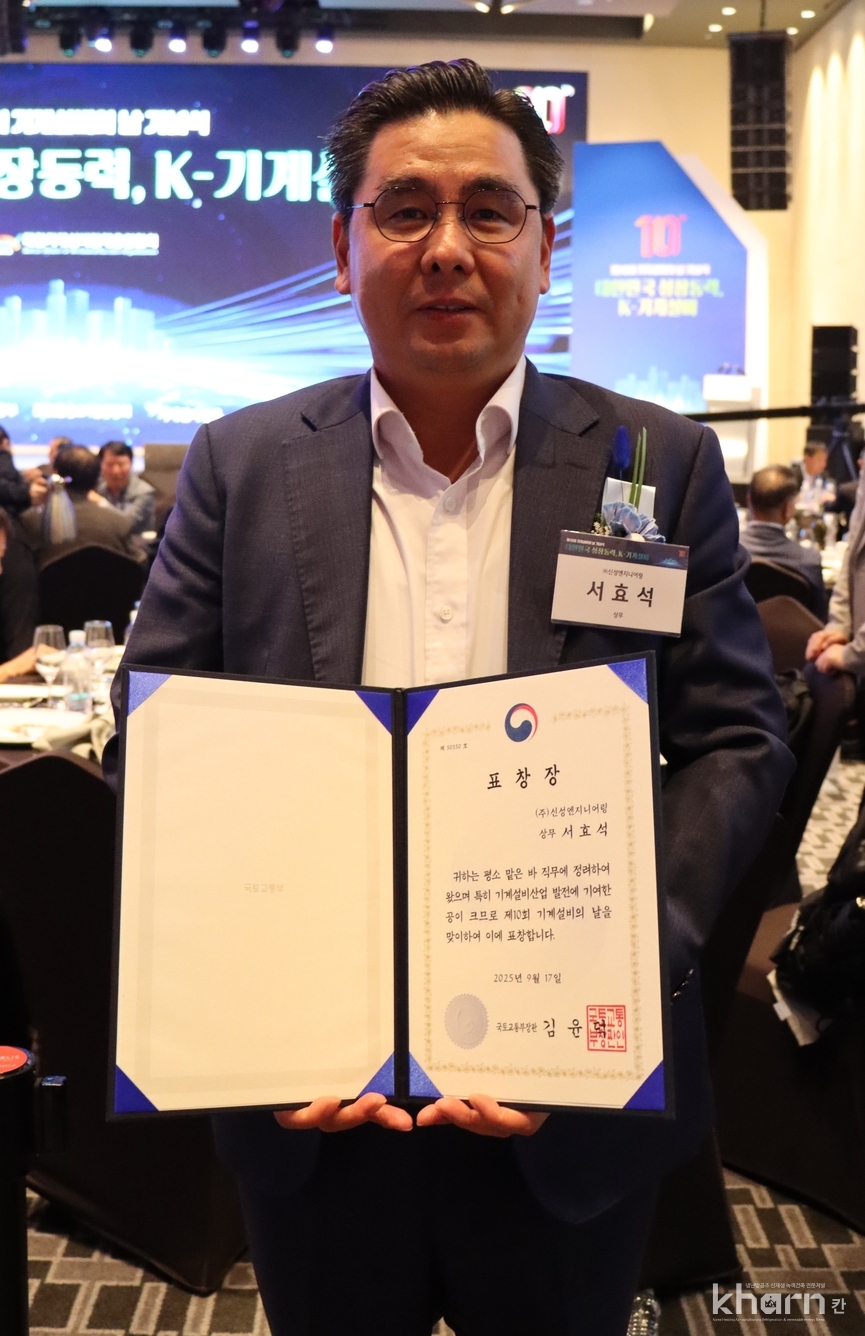 서효석 신성엔지니어링 상무가 9월17일 서울 드래곤시티에서 열린 ‘제10회 기계설비의 날’ 행사에서 국토교통부장관 표창을 수상했다.