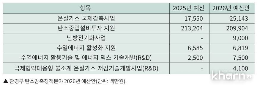 환경부는 2026년도 환경부 예산·기금 총지출(환경부 소관 기후대응기금 사업포함)을 올해대비 7.5% 증가한 15조9,160억원으로 편성했다. 2030 NDC 목표달성을 위한 온실가스 국제감축사업 예산안을 43.3% 대폭 확대했다.
