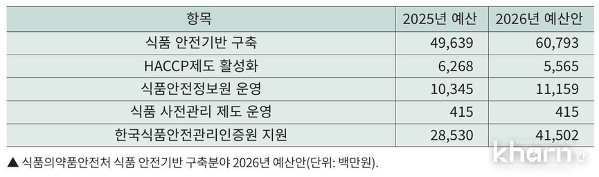 식품의약품안전처(처장 오유경)는 2026년도 예산안을 총 8,122억원으로 편성했다. 이는 올해 예산 7,489억원과 비교해 633억원(8.4%) 증가한 수치다. 먹거리 안전 및 건강한 식생활 환경을 조성하기 위해 식품 안전기반 구축 관련 예산은 2025년 496억원대비 2026년 607억원으로 약 22.6% 증가했다.
