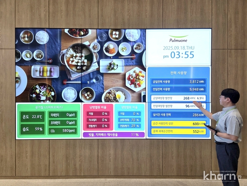 LG전자는 풀무원기술원 준공 시 통합 냉난방공조(HVAC)시스템을 공급했다. 고효율 열원장비인 냉방용 빙축열시스템과 난방용 지열히트펌프 등을 설치했으며 BEMS로 각종 설비의 실시간 데이터를 수집하고 이를 기반으로 자동제어 및 피크부하를 관리한다. 또한 BEMS는 실내외 온도와 습도, CO₂, 조도, 미세먼지 등 9개 환경요소를 센서로 감지해 공간별 목적에 맞는 환경을 유지하면서 에너지사용을 최소화하도록 설계됐다.