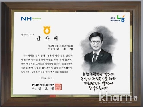 안호영 위원장은 “오늘의 감사패는 저 개인을 위한 것이 아니라 농업과 농촌을 지키기 위해 모두가 함께 펼쳐온 노력이 모인 결과”라며 “농업경쟁력 강화와 농촌의 지속가능한 발전을 위해, 그리고 농업인 여러분과 농협이 처한 현실을 늘 기억하며 성심껏 최선을 다하겠다”고 밝혔다.