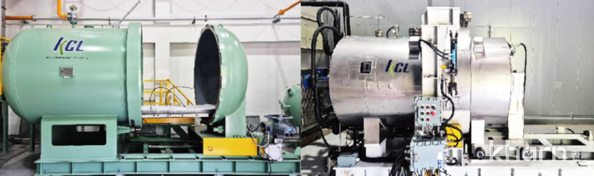 저온내압방폭시험장치는 저온환경에서 내압방폭용기의 기준압력측정·폭발인화시험이 가능하다. -60℃까지 사용되는 방폭형 회전기·발전기 등의 전기기기 시험도 가능하다. 또한 △내부직경 ∅1,000㎜ X 1,600㎜ △-60℃에서 실온까지 작동이 가능하다.