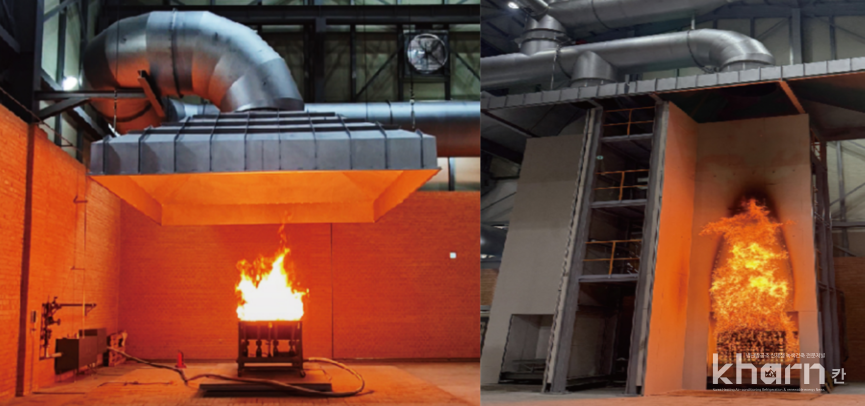 또한 5MW급 발열량 측정장치를 통해 다양한 자재와 구조물의 화재 안전성을 정밀하게 평가할 수 있다. 장치는 CO₂·CO·O₂에 대한 실시간 정량분석과 연기밀도 측정이 가능하며 실제 화재 시 발생하는 △열방출율 △산소소모량 △온도 △유량 등 화재인자들을 분석해 안전기준을 진단한다. 장치는 배터리·ESS에 대한 열폭주·열확산시험과 화재성능에 대한 실증시험 평가를 받았으며 ISO 24473와 UL 9540A 기준에 따랐다.