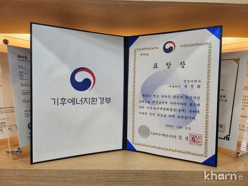 냉매회수전문기업 삼성이엔지의 윤정희 대표가 일회용 냉매용기 회수·재생체계를 민간 주도로 구축하고 온실가스 감축 및 냉매관리 선진화에 기여한 공로를 인정받아 기후에너지환경부장관상을 수상하는 영예를 안았다.