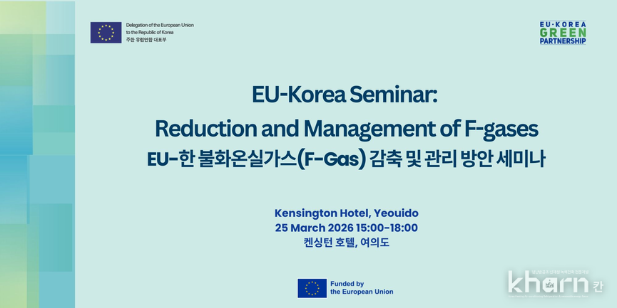 주한 유럽연합(EU) 대표부가 주최하고 EU-한국 그린파트너십 프로그램(GPP)이 주관하는 ‘EU-Korea 불화온실가스(F-Gas) 감축 및 관리방안 세미나’가 오는 3월25일 오후 3시부터 6시까지 서울 여의도 켄싱턴호텔 그랜드 스테이션룸(15층)에서 열린다.
