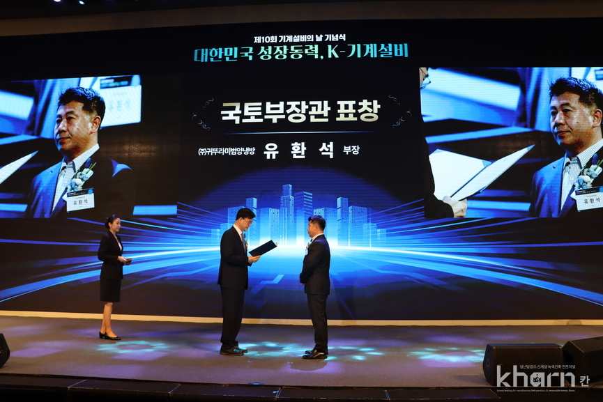 유환석 귀뚜라미범양냉방 부장이 29년간 냉난방공조분야에서 품질보증과 생산관리업무에 종사하면서 관련 산업발전에 기여한 공로를 인정받아 ‘제10회 기계설비의 날’에서 국토교통부 장관상을 수상했다.