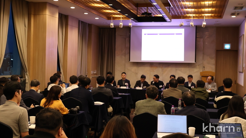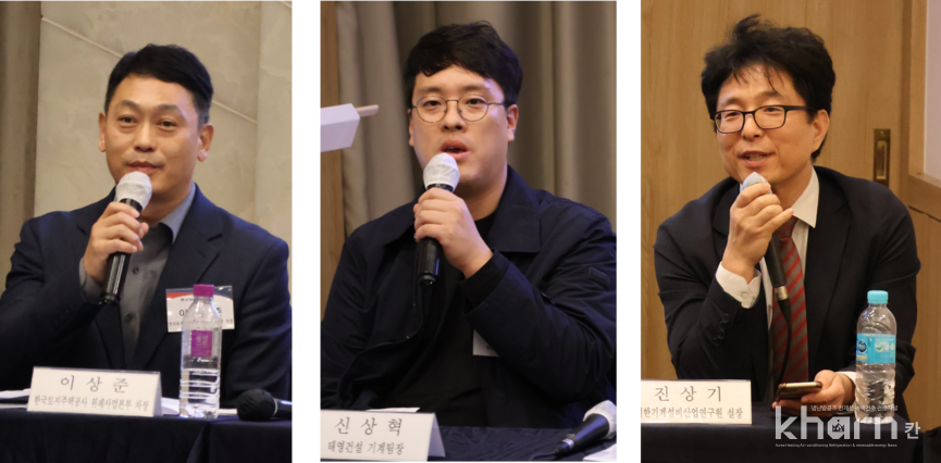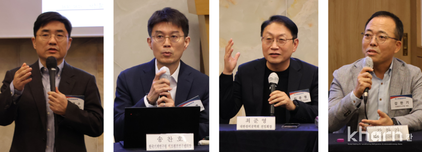 주제발표 이후 패널토론이 진행됐다. 장영수 대한설비공학회 차기회장(국민대 교수)이 좌장을 맡은 가운데 △홍성준 국토부 녹색건축과 과장 △최준영 대한설비공학회 전임 회장 △이상준 한국토지주택공사 위례사업본부 차장 △송찬호 한국기계연구원 히트펌프연구센터장 △진상기 대한기계설비산업연구원 실장 △강한기 이젠엔지니어링 대표 △신상혁 태영건설 기계팀장 등이 패널로 참여했다.