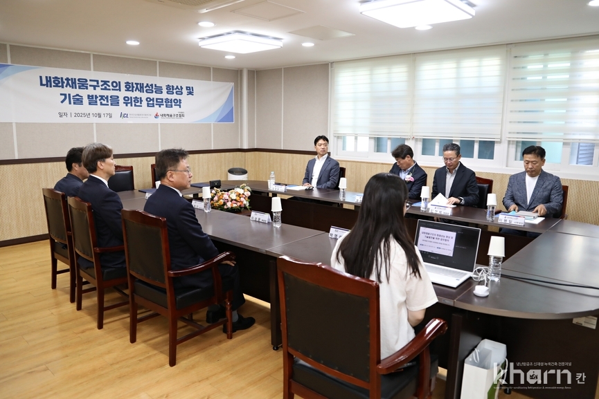 협약식에는 원철희 내화채움구조협회 회장을 비롯해 협회에서 △김성수 협회 수석부회장 △임현석 부회장 △이병일 사무국장 등이, KCL에서는 △이상문 부원장 △신동기 본부장 △박영섭 센터장 △윤준수 수석연구원 △이혜학 연구원 등이 참석했다.