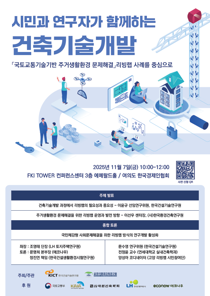 이번 행사는 한국건설기술연구원(KICT)이 주최하고 한국환경건축연구원이 주관하며 △국토교통부 △국토교통과학기술진흥원 △한국토지주택공사(LH) △대한건축학회 △에코나우 등이 후원에 참여한다.