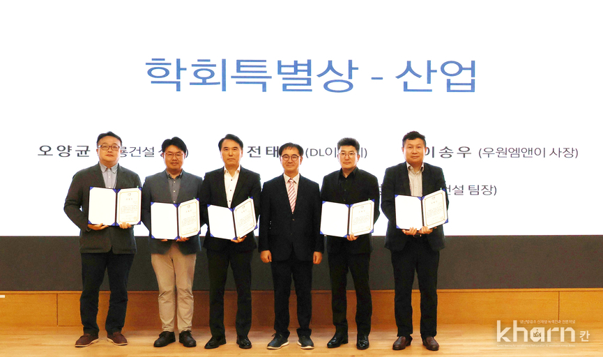 산업부문 학술회특별상에는 △오양균 계룡건설 상무 △전태용 DL이앤씨 이사 △이송우 우원앰엔이 사장 △정대규 신성엔지니어링 팀장 △홍정표 현대건설 팀장 등이 수상했다. 공로상은 전임회장인 박창용 서울과학기술대학교 교수가 수상했다.
