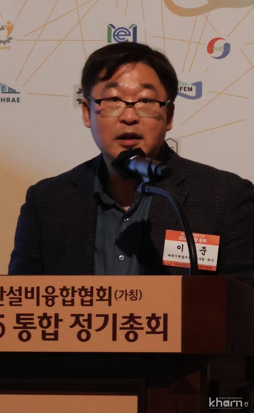 강기호 설비기술협회 전임회장은 지난 11월25일 2025년 통합총회 행사에서 기계설비기술관리법안 추진경과를 보고했다.