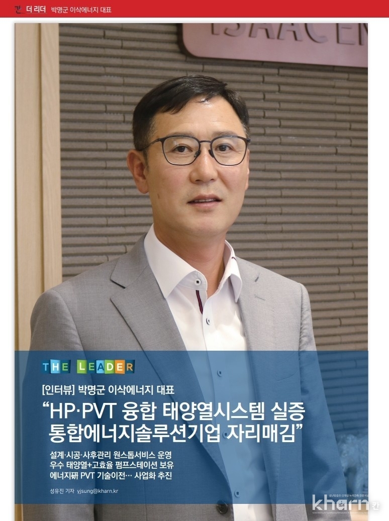 이삭에너지도 태양열을 최대한 활용하고자 PVT·히트펌프 융합시스템 실증사업을 추진해 ZEB의 표준모델을 제시할 계획이다. 이를 통해 건축물 에너지자립도를 높이고 탄소배출 저감, 에너지비용 절감 등을 동시에 달성하는 것이 목표다. 중장기적으로는 재생열기반 통합에너지솔루션 기업으로 자리매김하고자 한다.