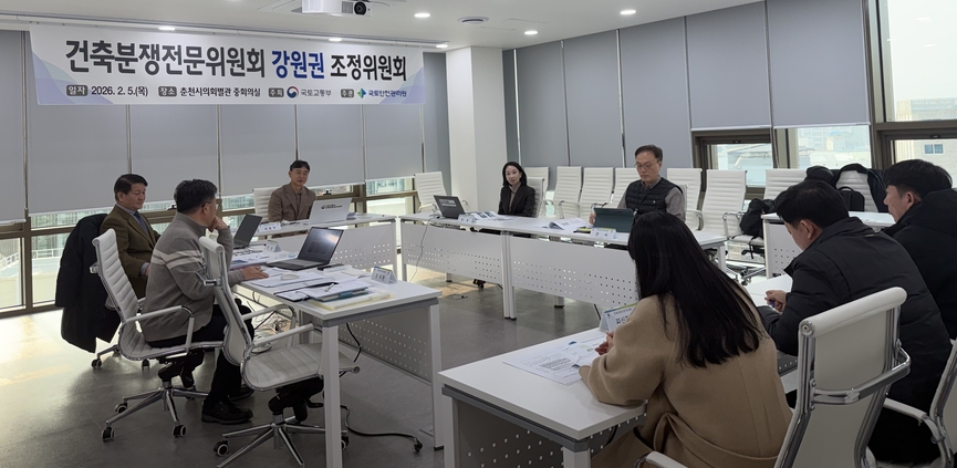 국토안전관리원(원장 박창근)은 지난 2월5일 강원특별자치도 춘천시 의회 중회의실에서 ‘찾아가는 건축분쟁조정위원회’를 개최했다고 밝혔다. 이날 위원회는 현장 중심의 조정을 통해 건축 분쟁 당사자의 고충을 신속하게 해소하고 회의 참석 편의를 높이기 위해 마련됐다.