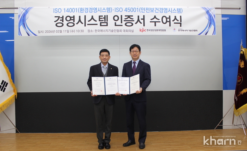 한국에너지기술인협회(회장 이충호)가 ISO 14001(환경경영시스템)과 ISO 45001(안전보건경영시스템) 국제표준 인증을 동시에 취득하며 환경과 안전을 아우르는 책임경영 체계를 공식적으로 인정받았다.