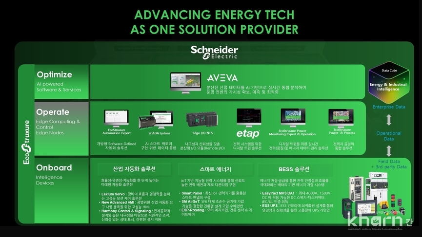 슈나이더 일렉트릭은 2월25일 산업자동화·스마트에너지·BESS솔루션을 아우르는 현장지능형 통합인프라 포트폴리오를 공개했다고 밝혔다.