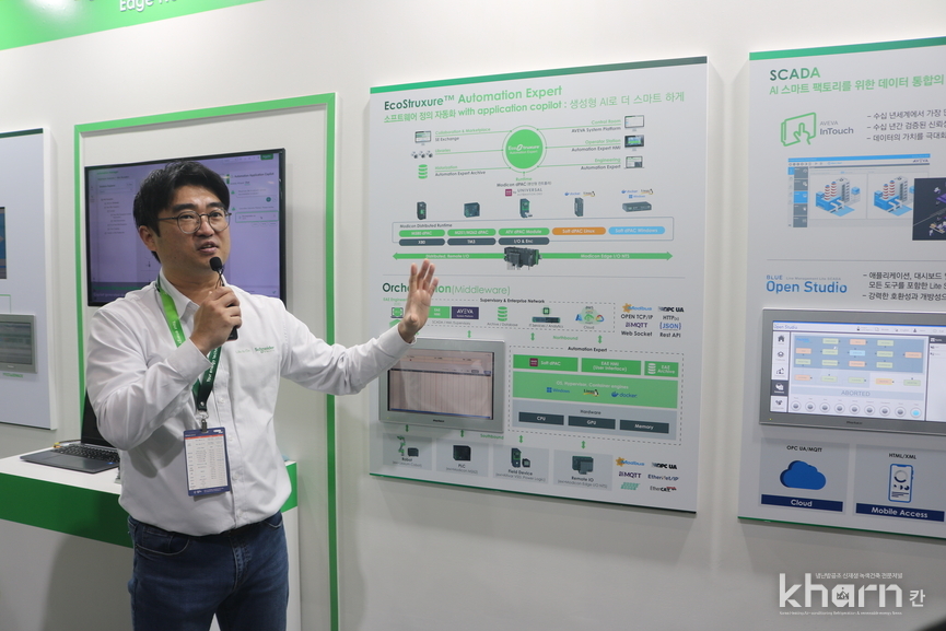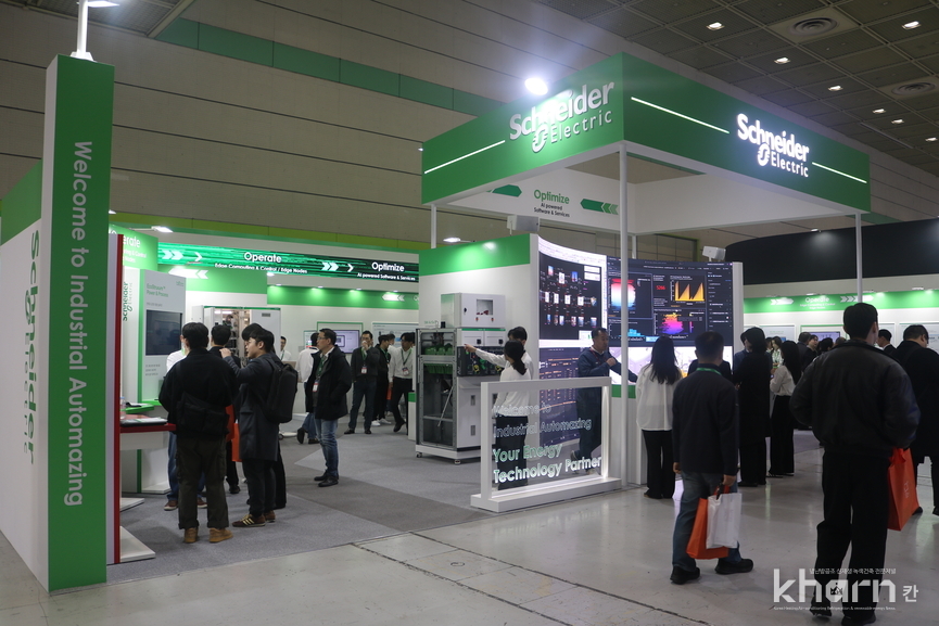 이번 전시는 글로벌표준을 지원하는 개방형플랫폼 ‘에코스트럭처(EcoStruxure)’를 기반으로 하드웨어부터 소프트웨어까지 완전한 연결성을 구현했다. 개별기술을 분리해 소개하는 것이 아니라 기계·공정·비즈니스 전반으로 확장되는 운영구조를 따라 스토리텔링형 전시로 선보였다. 이를 통해 자동화와 에너지기술이 결합된 미래산업환경을 직관적으로 체감할 수 있도록 했다.