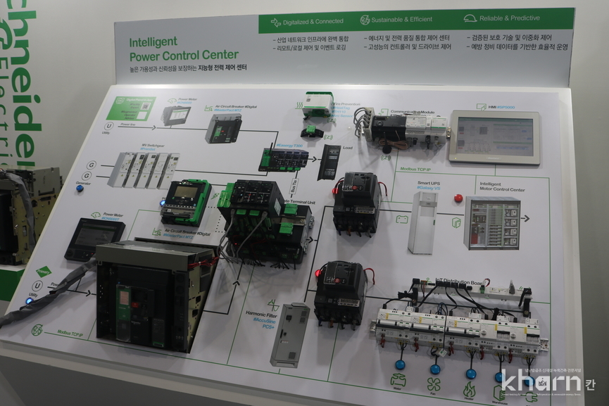 슈나이더의 스마트판넬은 IoT기반 디지털기능이 결합된 스마트 배전솔루션으로 전력소비를 실시간으로 모니터링하고 최적화한다. 개방형 통신프로토콜을 기반으로 데이터를 자동 가공·분석해 전력품질과 설비상태를 가시화하며 원격제어 및 이상동작감지를 지원한다. 이를 통해 데이터기반의 효율적인 에너지관리와 안정적인 전력운영을 구현한다.