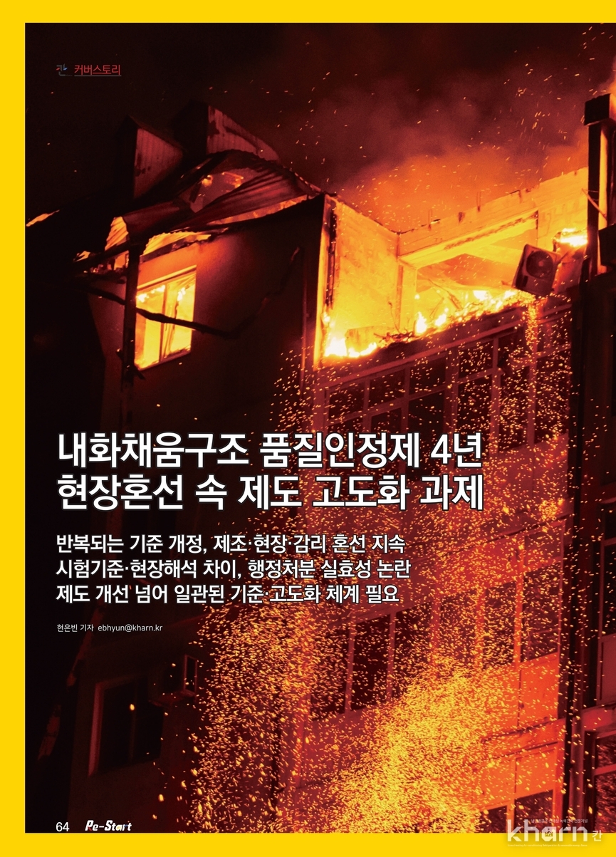 이번 기획에서는 내화채움구조 품질인 정제도 도입 배경과 현장에서 반복적으로 제기되는 주요 쟁점을 짚고 제도의 안정적 정착을 위한 개선 방향을 살펴본다.