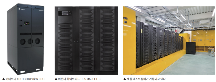 버티브의 UPS는 높은 과부하 환경과 급격한 AI 부하변화에 대응할 수 있는 구조를 제공해 이러한 요구를 충족한다. 또한 고전력·고발열 환경에서는 안정적인 냉각시스템이 필수적이다. 냉각장치 정전은 GPU 서버운영에 치명적일 수 있다. 이에 따라 냉각장치에 무정전전원을 공급하는 Utility용 UPS 적용사례가 늘어